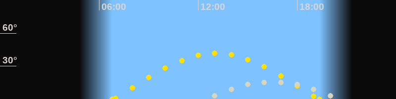 | Sonnenaufgang | 06:47 Uhr im Osten (αAz = 84.9°) |