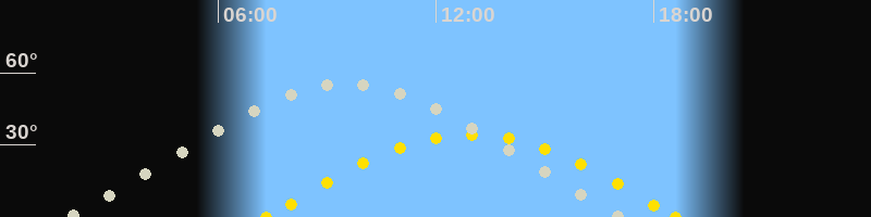 | Sonnenaufgang | 07:19 Uhr im Osten (αAz = 97.2°) |