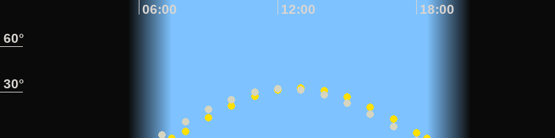 | Sonnenaufgang | 07:25 Uhr im Osten (αAz = 99.6°) |