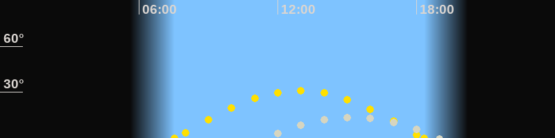 | Sonnenaufgang | 07:32 Uhr im Osten (αAz = 102°) |