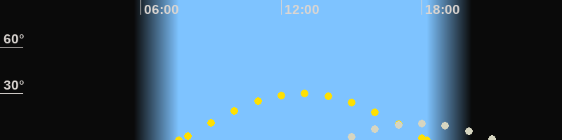 | Höchster Sonnenstand (Kulmination) | 12:55 Uhr (h = 30.1°) |