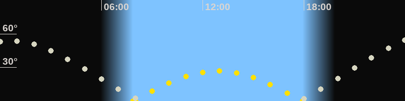 | Höchster Sonnenstand (Kulmination) | 12:54 Uhr (h = 26.9°) |