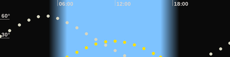 | Höchster Sonnenstand (Kulmination) | 11:53 Uhr (h = 25.2°) |