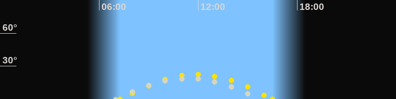 | Höchster Sonnenstand (Kulmination) | 11:54 Uhr (h = 22.4°) |