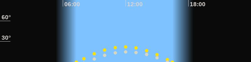 | Höchster Sonnenstand (Kulmination) | 11:54 Uhr (h = 22.2°) |