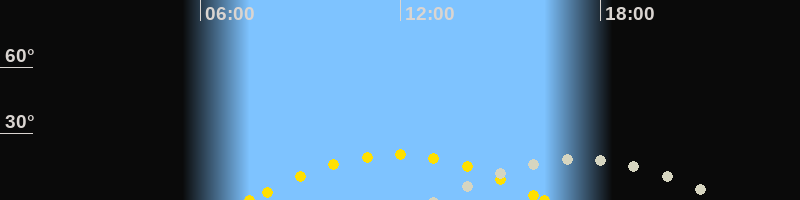 | Höchster Stand (Kulmination) | 17:15 Uhr (h=18.3°) |