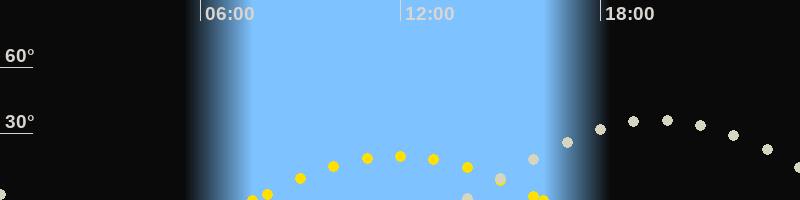 | Höchster Sonnenstand (Kulmination) | 11:55 Uhr (h = 19.8°) |