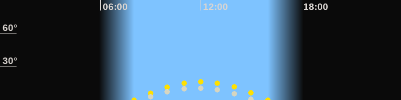 | Höchster Sonnenstand (Kulmination) | 12:02 Uhr (h = 16.5°) |