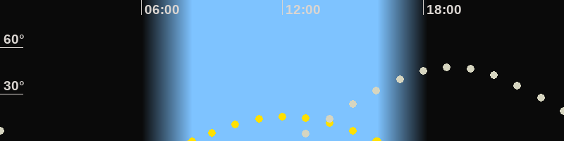 | Höchster Sonnenstand (Kulmination) | 12:06 Uhr (h = 15.9°) |