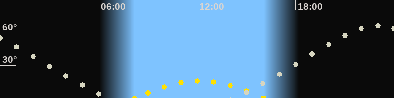 | Höchster Sonnenstand (Kulmination) | 12:08 Uhr (h = 15.8°) |