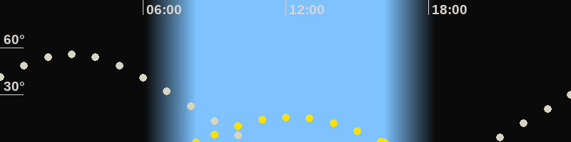 | Höchster Sonnenstand (Kulmination) | 12:11 Uhr (h = 15.9°) |