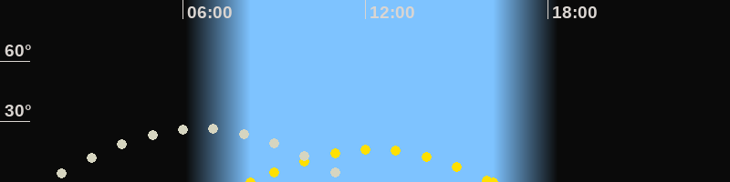 | Höchster Sonnenstand (Kulmination) | 12:13 Uhr (h = 16.2°) |
