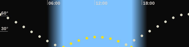 Höchster Sonnenstand (Kulmination)12:21 Uhr (h = 19.3°)