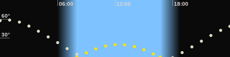 | Höchster Sonnenstand (Kulmination) | 12:21 Uhr (h = 19.8°) |
