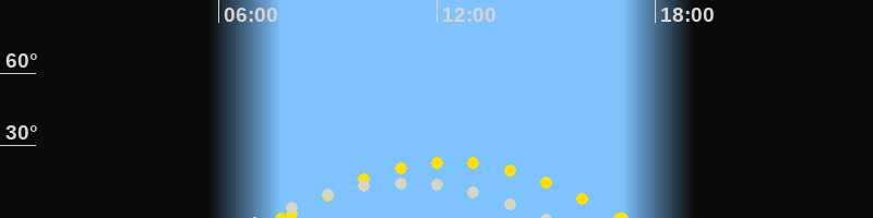 | Höchster Stand (Kulmination) | 11:00 Uhr (h=14.5°) |