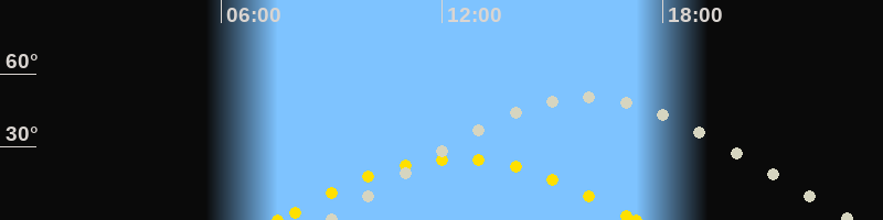 | Sonnenaufgang | 07:32 Uhr im Osten (αAz = 112.1°) |