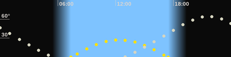 | Höchster Sonnenstand (Kulmination) | 12:24 Uhr (h = 27.2°) |