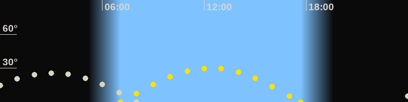 | Höchster Sonnenstand (Kulmination) | 12:23 Uhr (h = 30.1°) |