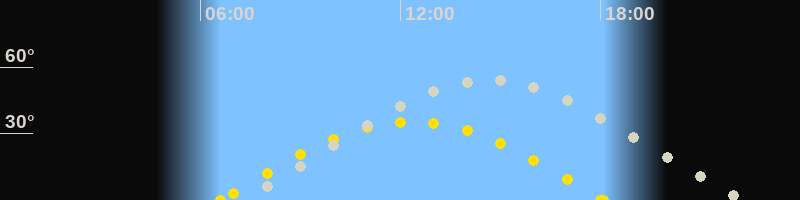 Höchster Stand (Kulmination)14:34 Uhr (h=53.9°)