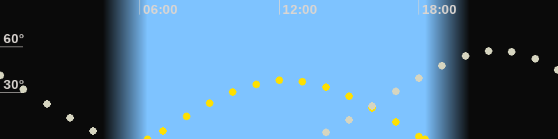 Höchster Sonnenstand (Kulmination)12:18 Uhr (h = 38.2°)
