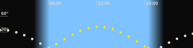 Höchster Sonnenstand (Kulmination)12:17 Uhr (h = 40.2°)