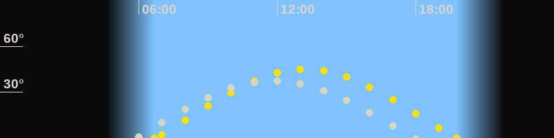 | Sonnenaufgang | 06:40 Uhr im Osten (αAz = 80.1°) |