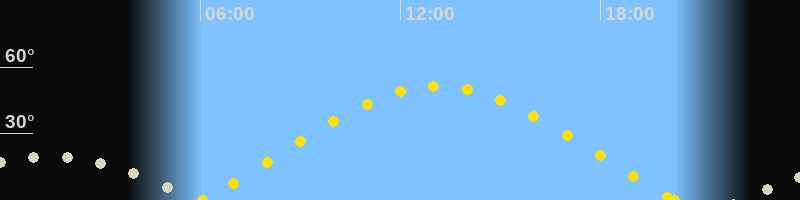 | Sonnenaufgang | 06:04 Uhr im Osten (αAz = 70.1°) |