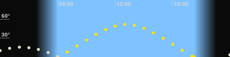 | Sonnenaufgang | 06:02 Uhr im Osten (αAz = 69.6°) |