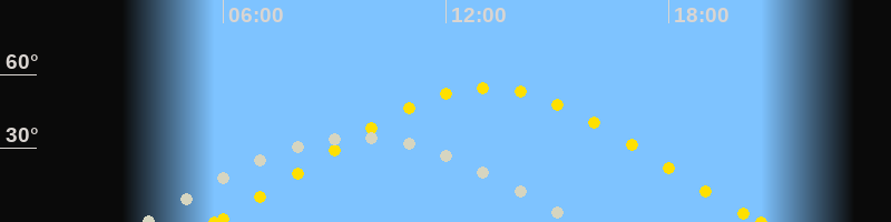 | Höchster Stand (Kulmination) | 09:30 Uhr (h=33.8°) |