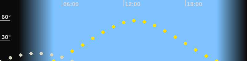 Höchster Sonnenstand (Kulmination)13:07 Uhr (h = 60°)