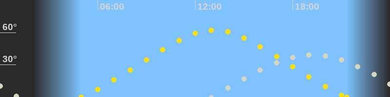 | Höchster Sonnenstand (Kulmination) | 13:09 Uhr (h = 62.3°) |