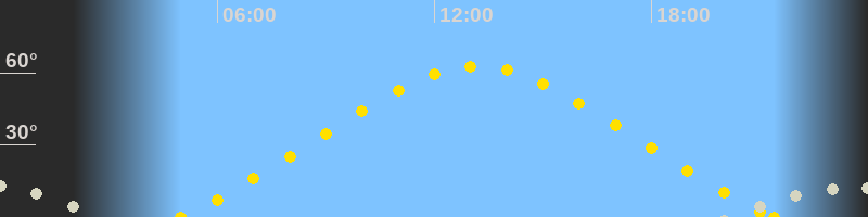 | Höchster Sonnenstand (Kulmination) | 13:11 Uhr (h = 62.6°) |