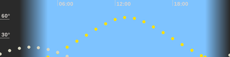 | Höchster Sonnenstand (Kulmination) | 13:12 Uhr (h = 62.7°) |