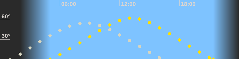 | Höchster Sonnenstand (Kulmination) | 13:13 Uhr (h = 62.5°) |