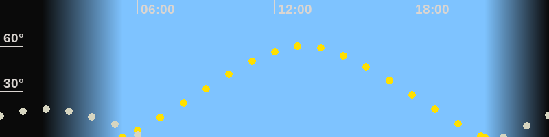 | Höchster Sonnenstand (Kulmination) | 13:16 Uhr (h = 60°) |
