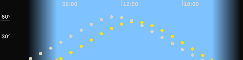 | Höchster Sonnenstand (Kulmination) | 13:16 Uhr (h = 57.6°) |