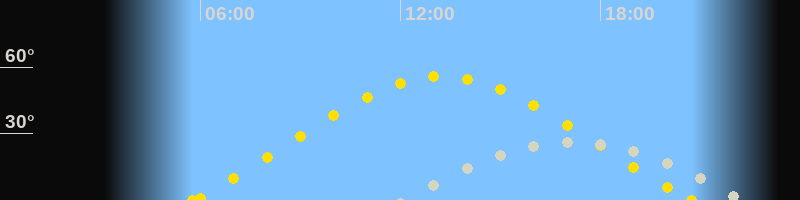 | Höchster Sonnenstand (Kulmination) | 13:16 Uhr (h = 55.8°) |