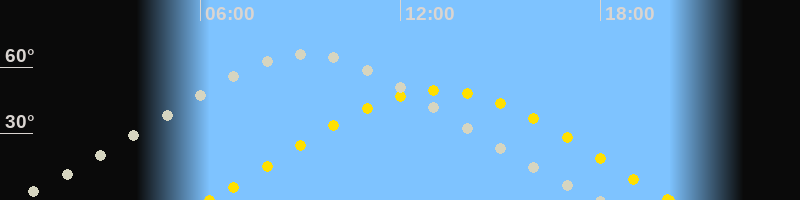 | Höchster Stand (Kulmination) | 09:08 Uhr (h=66°) |