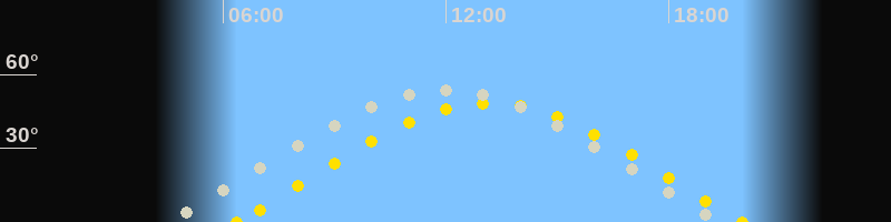 | Höchster Stand (Kulmination) | 12:00 Uhr (h=54.1°) |