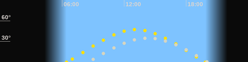 Höchster Sonnenstand (Kulmination)13:10 Uhr (h = 47.3°)