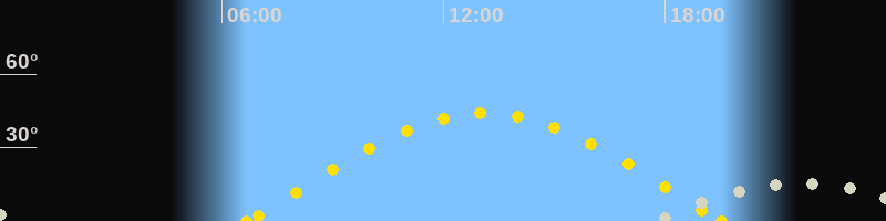 Höchster Sonnenstand (Kulmination)13:07 Uhr (h = 44°)