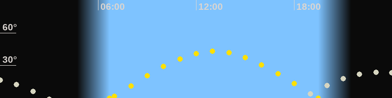 Höchster Sonnenstand (Kulmination)13:06 Uhr (h = 43.2°)