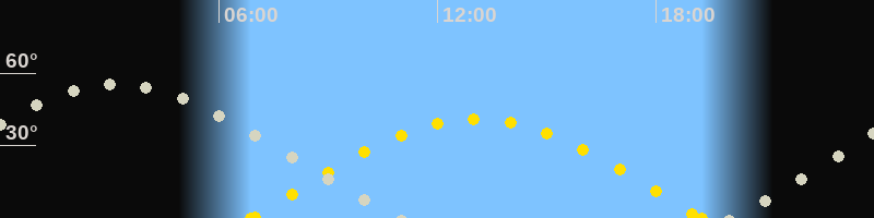 | Sonnenuntergang | 19:15 Uhr im Westen (αAz = 273.1°) |