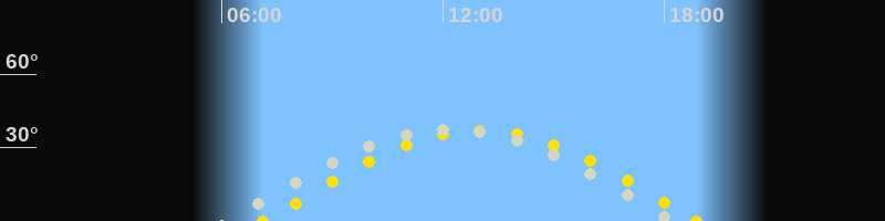 | Sonnenaufgang | 07:07 Uhr im Osten (αAz = 92.7°) |
