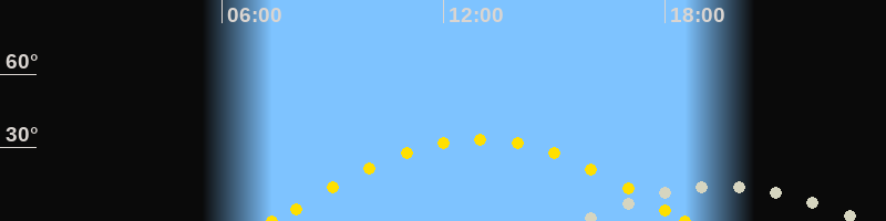 | Höchster Sonnenstand (Kulmination) | 12:58 Uhr (h = 33.5°) |