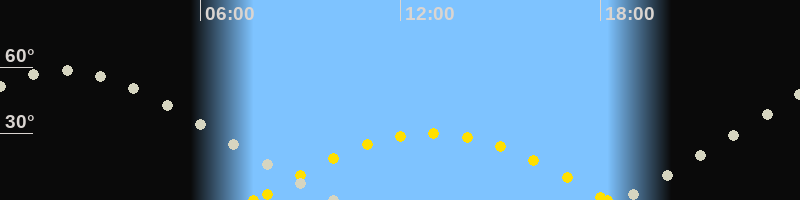 | Höchster Sonnenstand (Kulmination) | 12:55 Uhr (h = 30.1°) |
