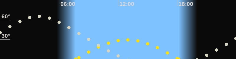 | Höchster Sonnenstand (Kulmination) | 12:55 Uhr (h = 29.4°) |