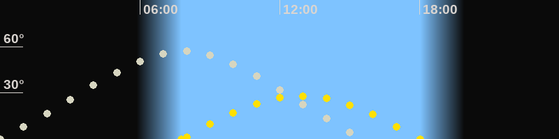 | Höchster Stand (Kulmination) | 07:50 Uhr (h=57.4°) |