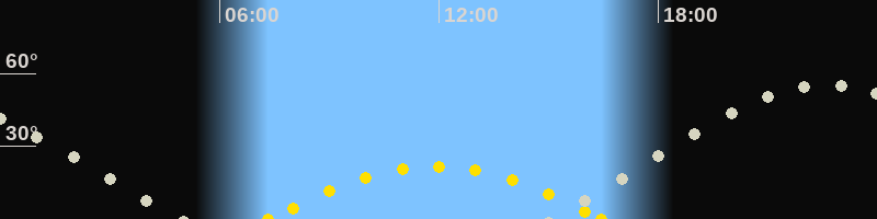 | Höchster Sonnenstand (Kulmination) | 11:54 Uhr (h = 21.7°) |
