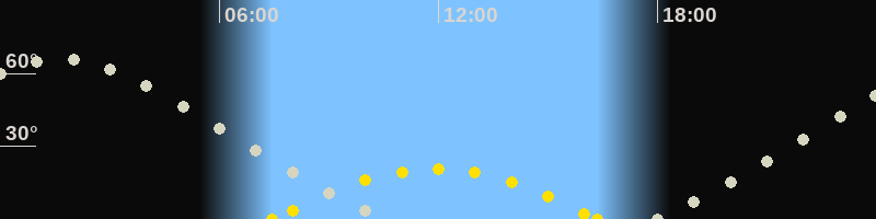| Höchster Sonnenstand (Kulmination) | 11:54 Uhr (h = 20.6°) |